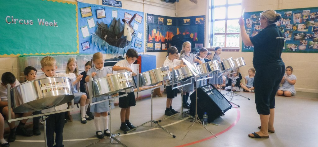 We recommend concluding the day with a celebration assembly, where pupils from each class showcase their newly learned steel drumming skills. The assemblies are full of energy, with singing, dancing, and audience participation, creating a true carnival atmosphere.